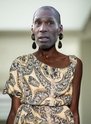 An underlying theme of reinvention cuts through this year’s London Fashion Week; here Leo models a dress inspired by Vivienne Westwood and fashioned from the unwanted curtains of a Women’s Institute in Orpington. The earings are made from the studs of a pair of Cica Blades Leo once wore whilst at Stevenage. |